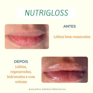 Nutri Gloss é um tratamento labial que transforma lábios sem viço, ressecados e com ruguinhas em lábios de seda. O nutri gloss é o tratamento ideal para quem sofre com lábios ressecados. Na técnica é realizada esfoliação labial, utilizamos microagulhamento superficial com ácido hialurônico para uma super-hidratação, após utilizamos uma mascará hidratante com ativos hidratantes e finalizamos com super gloss hidratante com ácido hialurônico.
