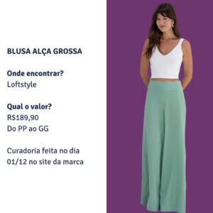 Nessa semana vamos falar muito sobre as blusas de alça grossa, que completam e deixam o look muito mais estiloso. Veja a curadoria que montamos para vocês.